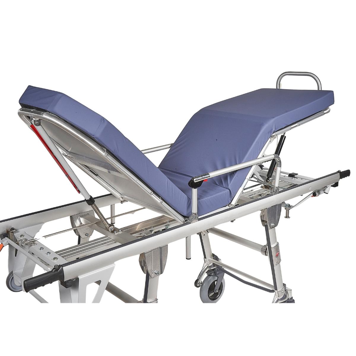 1. Chariot brancard d’ambulance monobloc avec plan dur 4 parties (dossier, assise, cuisses, pieds)